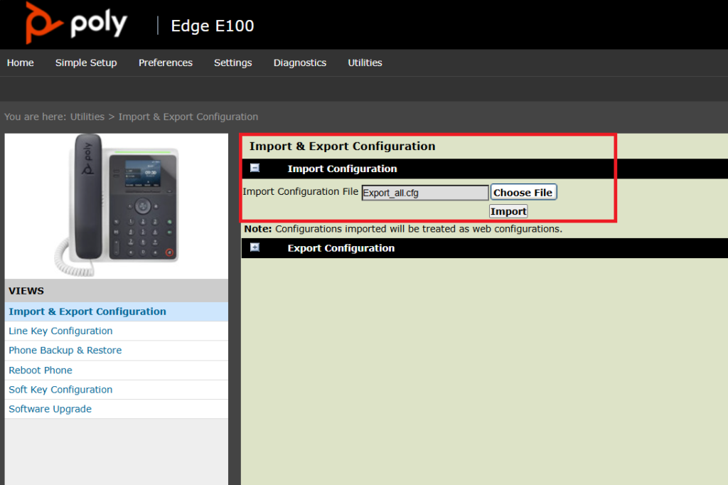 Login to the web sever on the phone by browsing to the phones IP address. Usually the web server is enabled by default on HTTPS but if its not you’ll need to browse on the Phones menu to the Web Server Configuration and set this to HTTPS Only. Once this is done you’ll see the screen below after entering the password. Again usually the default is 456 which you need to change!!
